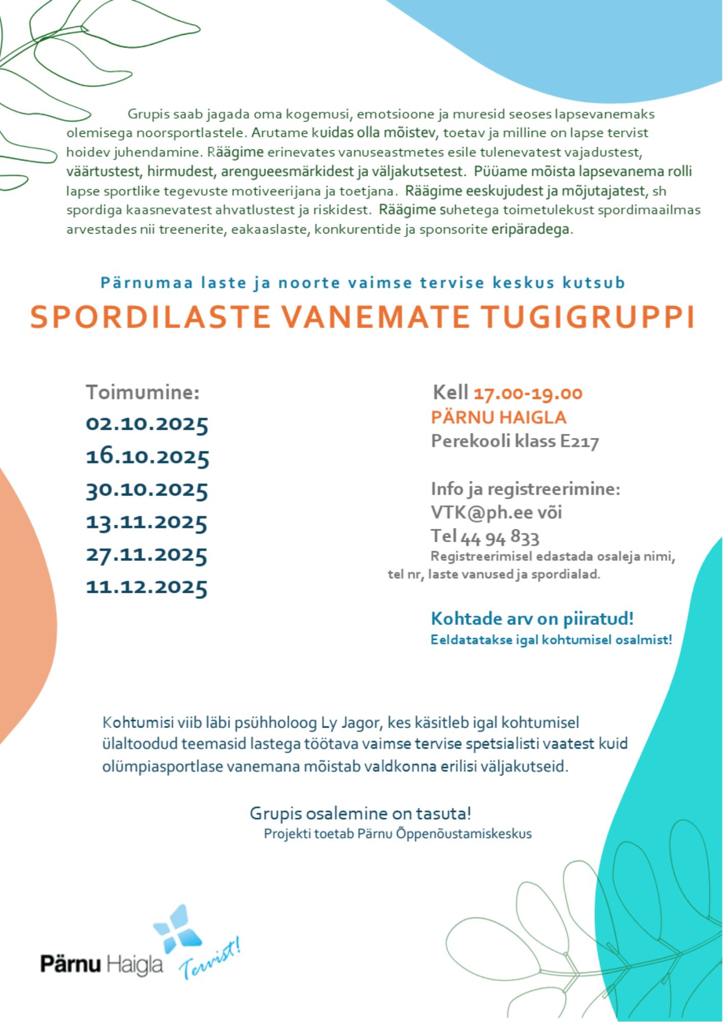 Laste ja noorte vaimse tervise keskuse poolt korraldatavad üritused